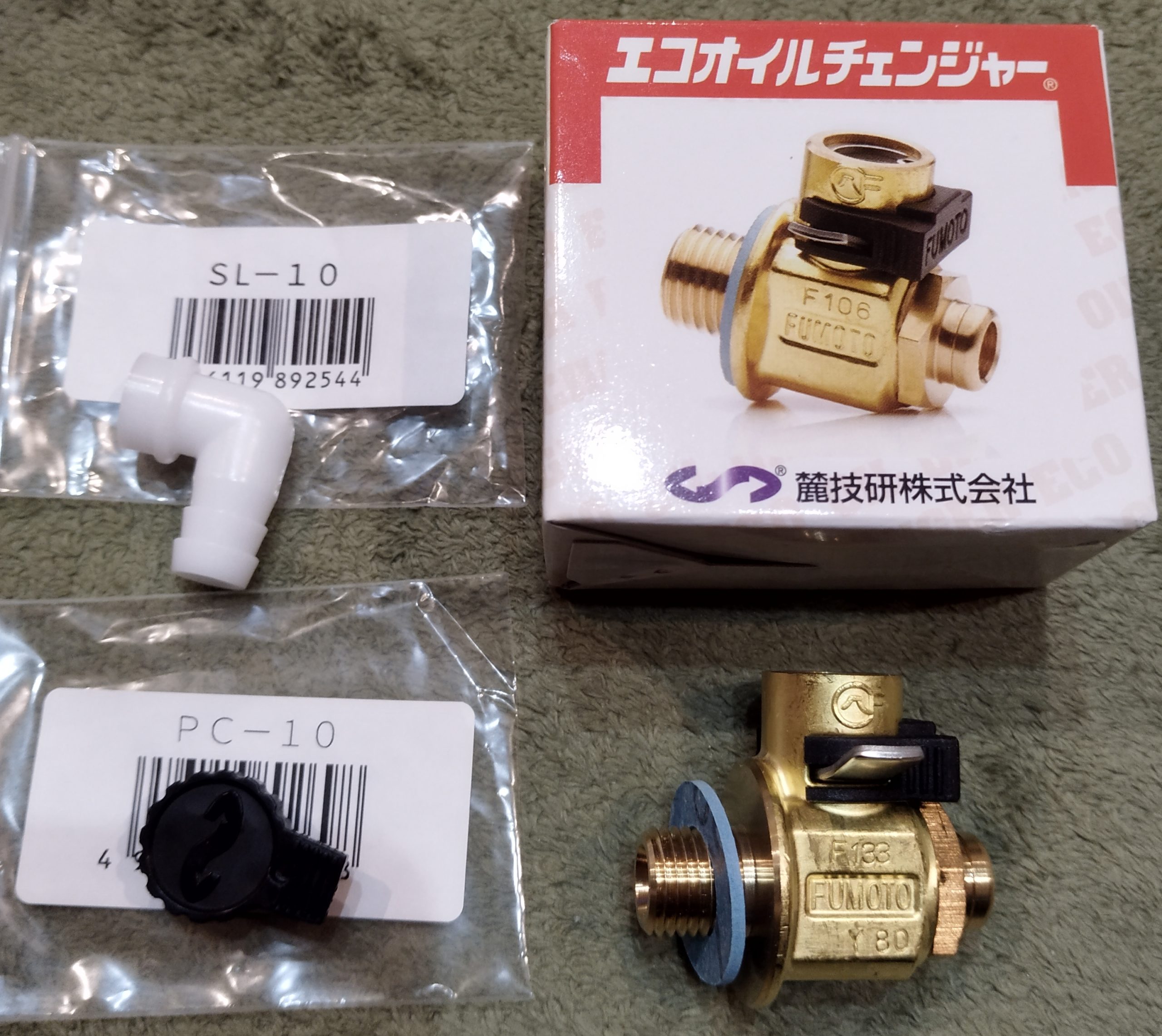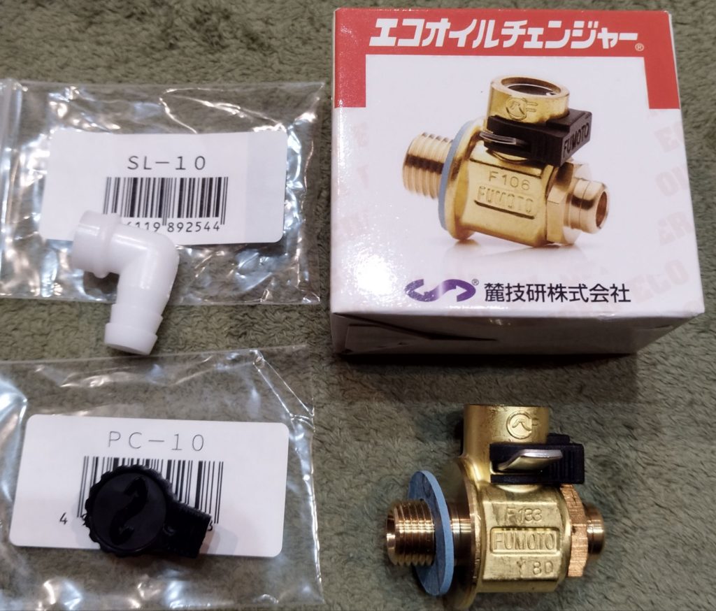 エコオイルチェンジャーを買う 車 2024.04.262024.07.21 L275S(ダイハツミラ)用を買う バイクのグロムには既に取り付けていたので、再び麓技研の商品を購入。 ドレンボルトサイズはM12-P1.25。 エコオイルチェンジャーとオプション品 品番はF133S。F103Sの改良品らしいです。 今回は排出口が汚れないようにキャップ(PC-10)とドレンホースを取り付ける為のエルボー(SL-10)を追加購入。 取付後の感想は後日行って報告したいと思います。 最後に麓技研さんのリンク貼っておきます↓ 麓技研株式会社